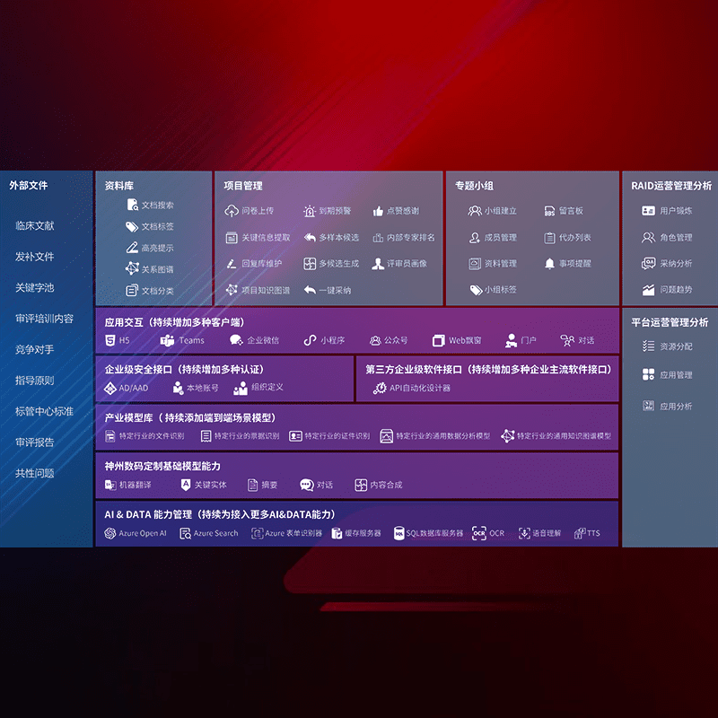 医疗器械产品上市前,,,,要熟悉严格与繁复评审标准,,,整理分析监管机构指导文件中的海量信息。。。企业急需一个智能化解决方案,,,,提升知识管理效率,,,,提高评审通过率,,,以提升其市场竞争力。。。。